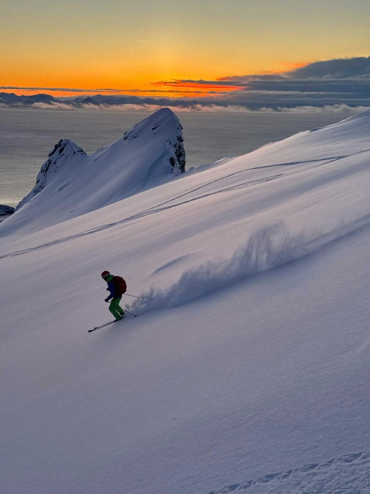 During this period, snow conditions are typically at their most reliable. February and early March bring classic winter light and stable snow. Late March and April offer longer daylight hours and quieter mountains, making them well suited for multi-day ski touring in Lofoten.